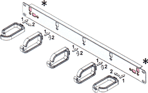 19", 1U, со съемными пластиковыми кольцами, 5 колец