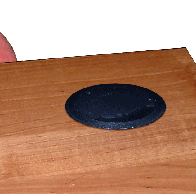 Все кабели вводятся в миниколонну с нижней части столешницы. В цоколе имеется возможность фиксировать подводимые к ней провода при помощи стяжек.