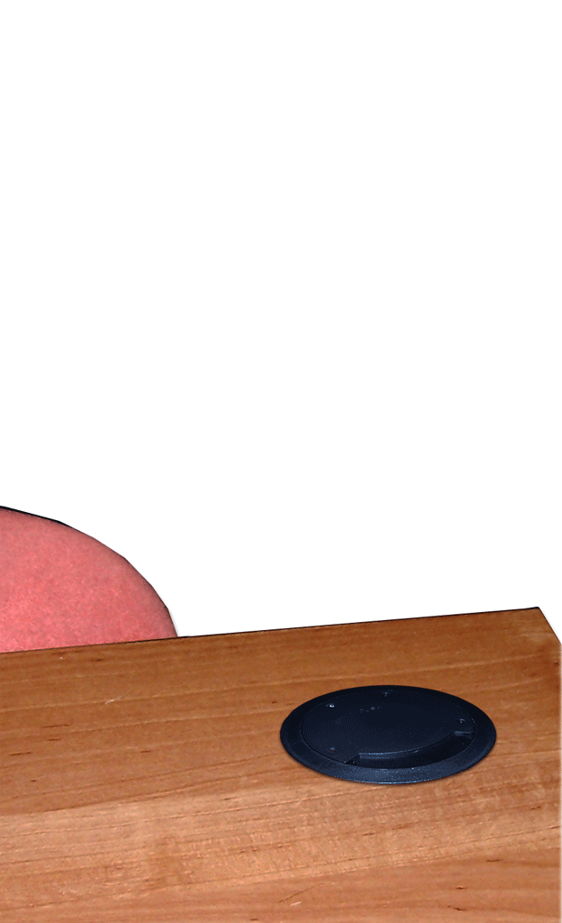 Все кабели вводятся в миниколонну с нижней части столешницы. В цоколе имеется возможность фиксировать подводимые к ней провода при помощи стяжек.
