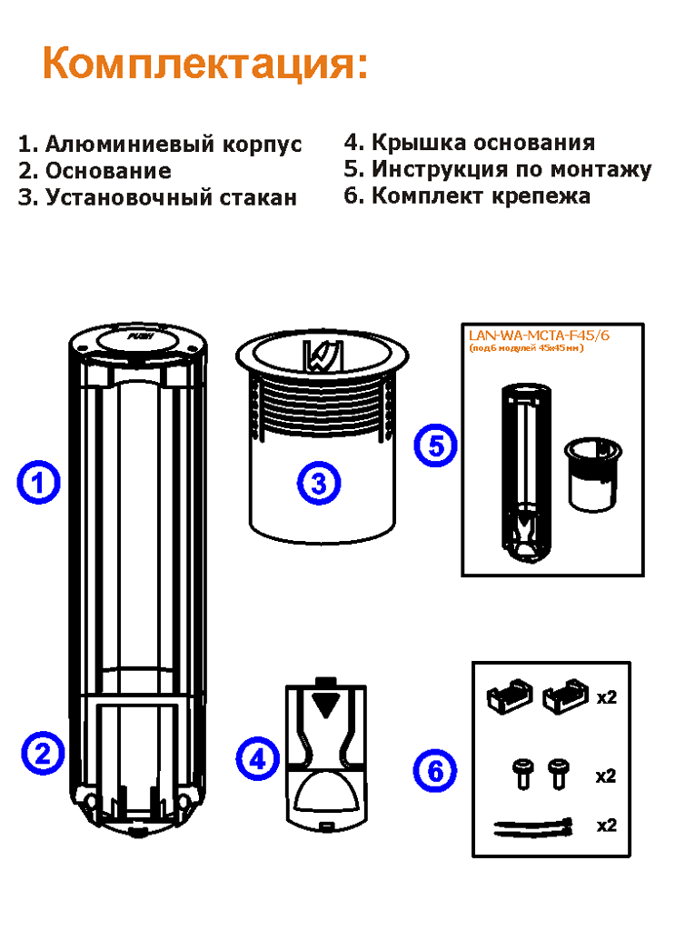 | LAN-WA-MCTA-F45/6 | Миниколонна в стол на 6 модулей Mosaic 45x45 |