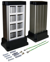 | Напольная двухрядная миниколонна предназначена для организации полноценных рабочих мест (телекоммуникационные порты плюс силовые электрические розетки), или многопользовательских телекоммуникационных розеток в местах удаленных от стен или колонн, а также в помещениях с открытой планировкой. Миниколонна имеет 8 посадочных мест под французский стандарт Mosaic 45x45 непосредственно в лицевых панелях (по 2 места в каждой панели).
