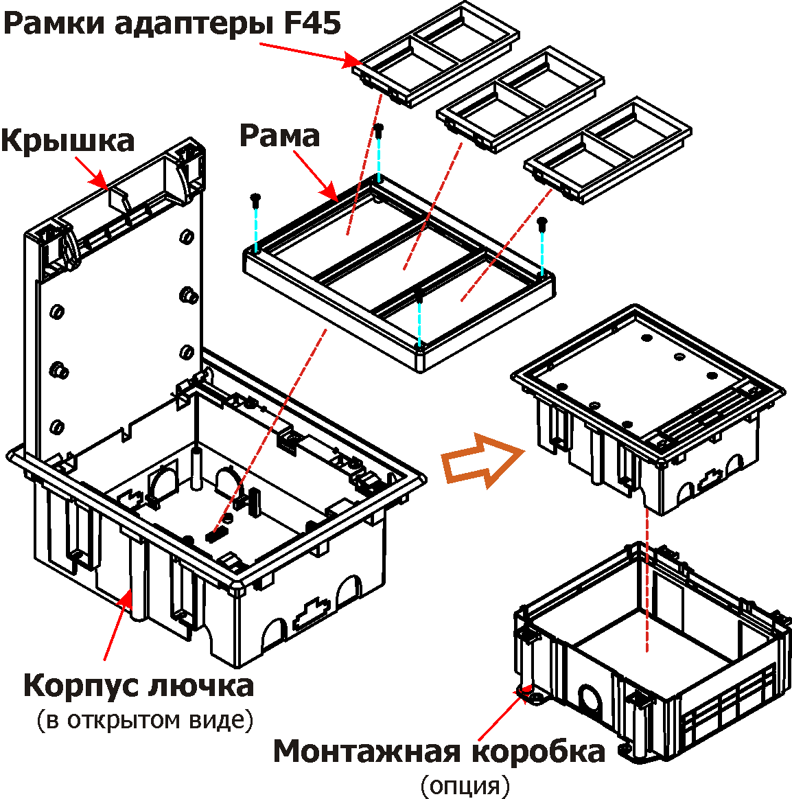 | LAN-WA-FLBP-F45/6 | Лючок в пол на 6 модулей Mosaic 45x45 |