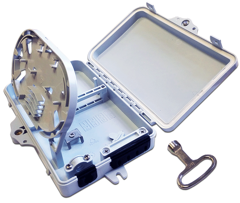 Для изготовления оптического бокса используется специальный пластик устойчивый к воздействию ультрафиолетовых лучей и позволяющий осуществлять эксплуатацию кросса в условиях широкого диапазона температур.