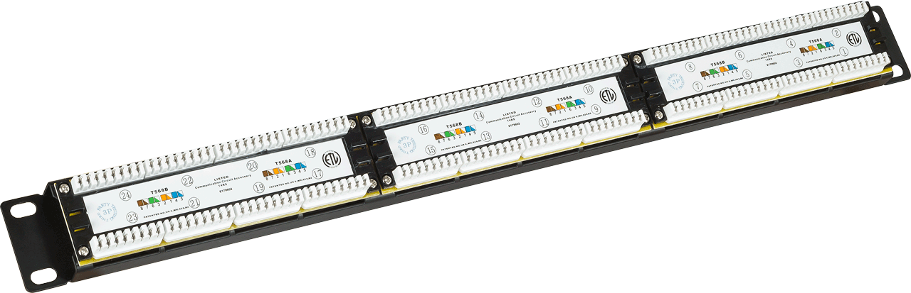 Патч-панели Неэкранированные патч-панели | Патч-панель LANMASTER 24 порта с индикаторами, UTP, кат.5E, 1U