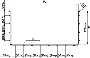 | Размеры: | | Высота (H) | | Ширина (W) | | Длина (L) | | Диаметр (D) | |  | | Артикул | Высота, мм. | Ширина, мм. | Длина, мм. | Диаметр, мм. | Вес, кг. | | LAN-MT200x200-3.8EZ | 200 | 200 | 3000 | 3.8 | 5.55 | | LAN-MT200x300-3.8EZ | 200 | 300 | 3000 | 3.8 | 6.59 | | LAN-MT200x400-3.8EZ | 200 | 400 | 3000 | 3.8 | 7.40 | | LAN-MT200x450-3.8EZ | 200 | 450 | 3000 | 3.8 | 7.81 | | LAN-MT200x500-3.8EZ | 200 | 500 | 3000 | 3.8 | 8.21 | | LAN-MT200x600-3.8EZ | 200 | 600 | 3000 | 3.8 | 9.03 |  |