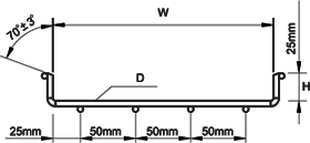 | Размеры: | | Высота (H) | | Ширина (W) | | Длина (L) | | Диаметр (D) | |  |  | | Артикул | Высота, мм. | Ширина, мм. | Длина, мм. | Диаметр, мм. | Вес, кг. | | LAN-MT25x50-3.8EZ | 25 | 50 | 3000 | 3.8 | 0.91 | | LAN-MT25x75-3.8EZ | 25 | 75 | 3000 | 3.8 | 1.01 | | LAN-MT25x100-3.8EZ | 25 | 100 | 3000 | 3.8 | 1.11 | | LAN-MT25x150-3.8EZ | 25 | 150 | 3000 | 3.8 | 1.31 | | LAN-MT25x200-3.8EZ | 25 | 200 | 3000 | 3.8 | 1.52 | | LAN-MT25x300-3.8EZ | 25 | 300 | 3000 | 3.8 | 1.92 | | LAN-MT25x400-3.8EZ | 25 | 400 | 3000 | 3.8 | 2.33 | | LAN-MT25x450-3.8EZ | 25 | 450 | 3000 | 3.8 | 2.53 | | LAN-MT25x500-3.8EZ | 25 | 500 | 3000 | 3.8 | 2.74 | | LAN-MT25x600-3.8EZ | 25 | 600 | 3000 | 3.8 | 3.14 | |  | Монтаж Изгибы, стояки, отводы, пересечения могут быть изготовлены непосредственно из прямых участков сетчатого лотка. Установка опор и(или) подвесов для крепления лотков должна рассчитываться исходя из предполагаемой нагрузки и может достигать 2,5м. Температурный режим эксплуатации кабельных лотков: от -40С до +150С Выбор размера лотка по количеству кабелей Высота проволочного лотка должна быть не меньше диаметра самого толстого кабеля при укладке в один ряд или суммы диаметров кабелей, уложенных в несколько рядов. Ширина лотка выбирается с учетом прокладки требуемого количества кабелей плюс запас на случай расширения кабельной емкости. При выборе размеров лотка необходимо также учитывать требования нормативных документов, например, п.2.1.61 ПУЭ гласит: "в коробах провода и кабели допускается прокладывать многослойно с упорядоченным и произвольным (россыпью) взаимным расположением. Сумма сечений проводов и кабелей, рассчитанных по их наружным диаметрам, включая изоляцию и наружные оболочки, не должна превышать: для глухих коробов 35% сечения короба в свету; для коробов с открываемыми крышками 40%." |