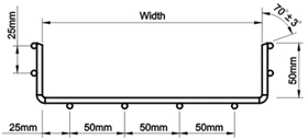 | Монтаж Изгибы, стояки, отводы, пересечения могут быть изготовлены непосредственно из прямых участков сетчатого лотка. Установка опор и(или) подвесов для крепления лотков должна рассчитываться исходя из предполагаемой нагрузки и может достигать 2,5м. Температурный режим эксплуатации кабельных лотков: от -40С до +150С |