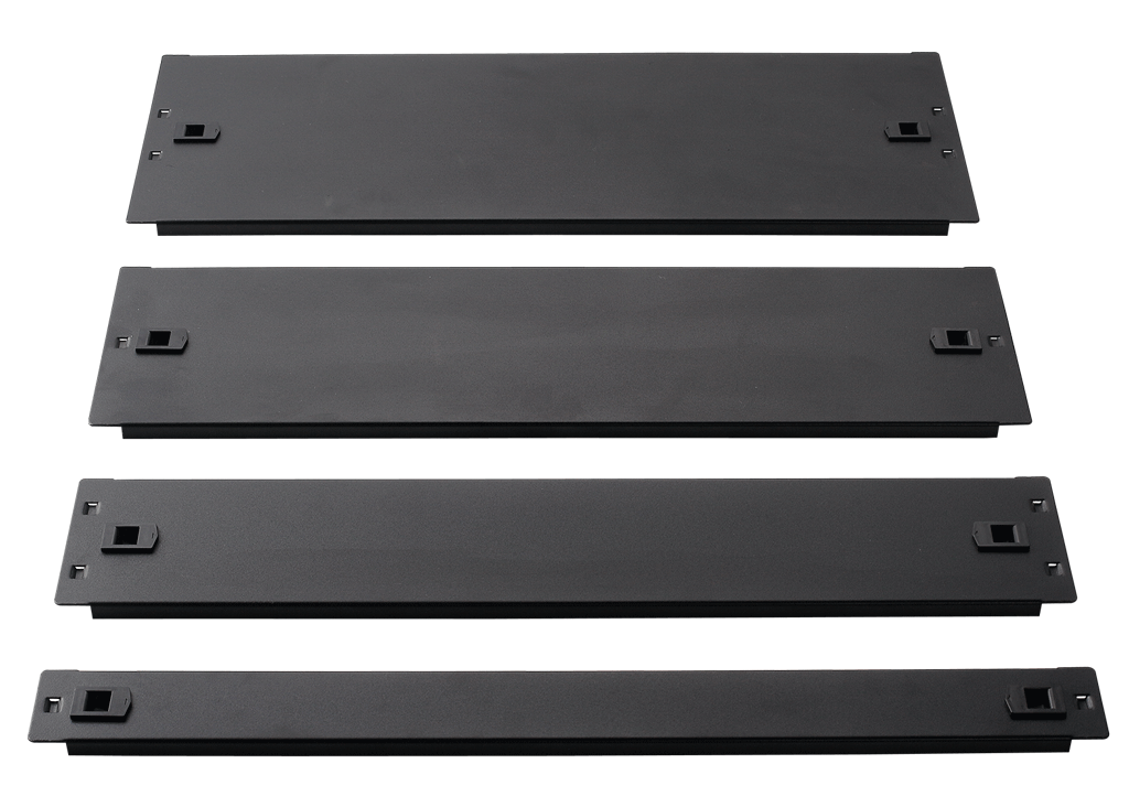 | Панель для установки на монтажные профили шкафа с целью закрытия неиспользуемого пространства, блокировки воздушных потоков и повышения эффективности охлаждения оборудования в шкафу. Панель фиксируется на профилях с помощью пластиковых защелок и не требует использования дополнительного крепежа. Цвет – черный. Материал – сталь.